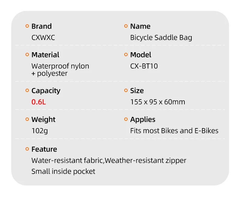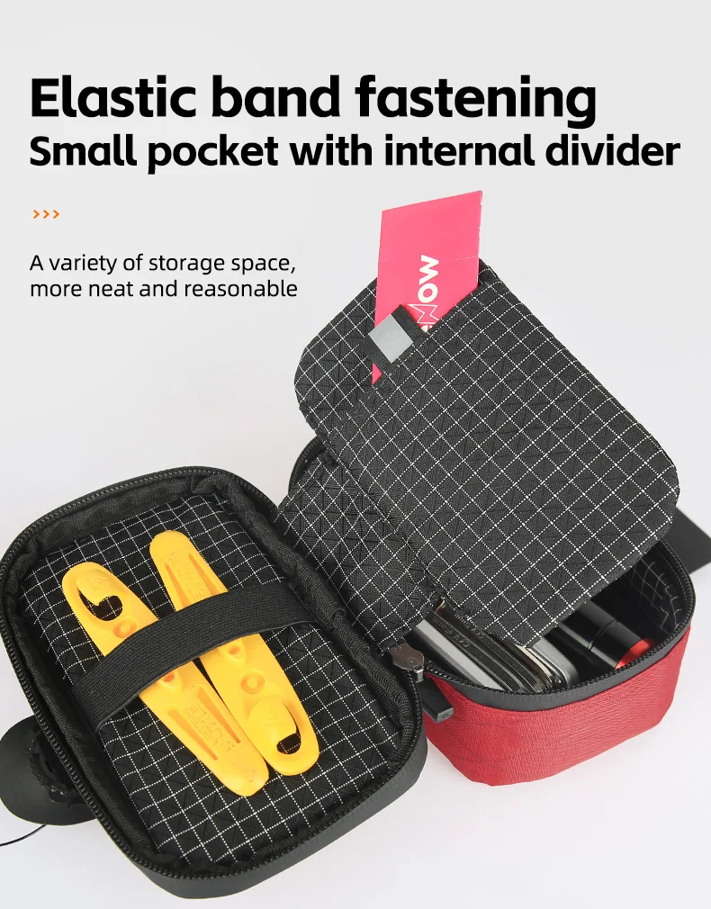 ** COMPACT BIKE SEAT BAG: If you are looking for a saddle bag that was small and wouldn't sway and also not allow any room for stuff to move around and make noise when riding. This bike bag is perfect for you. It have a strap each side and middle compartment with a pocket, that keeps everything organized so no noise.