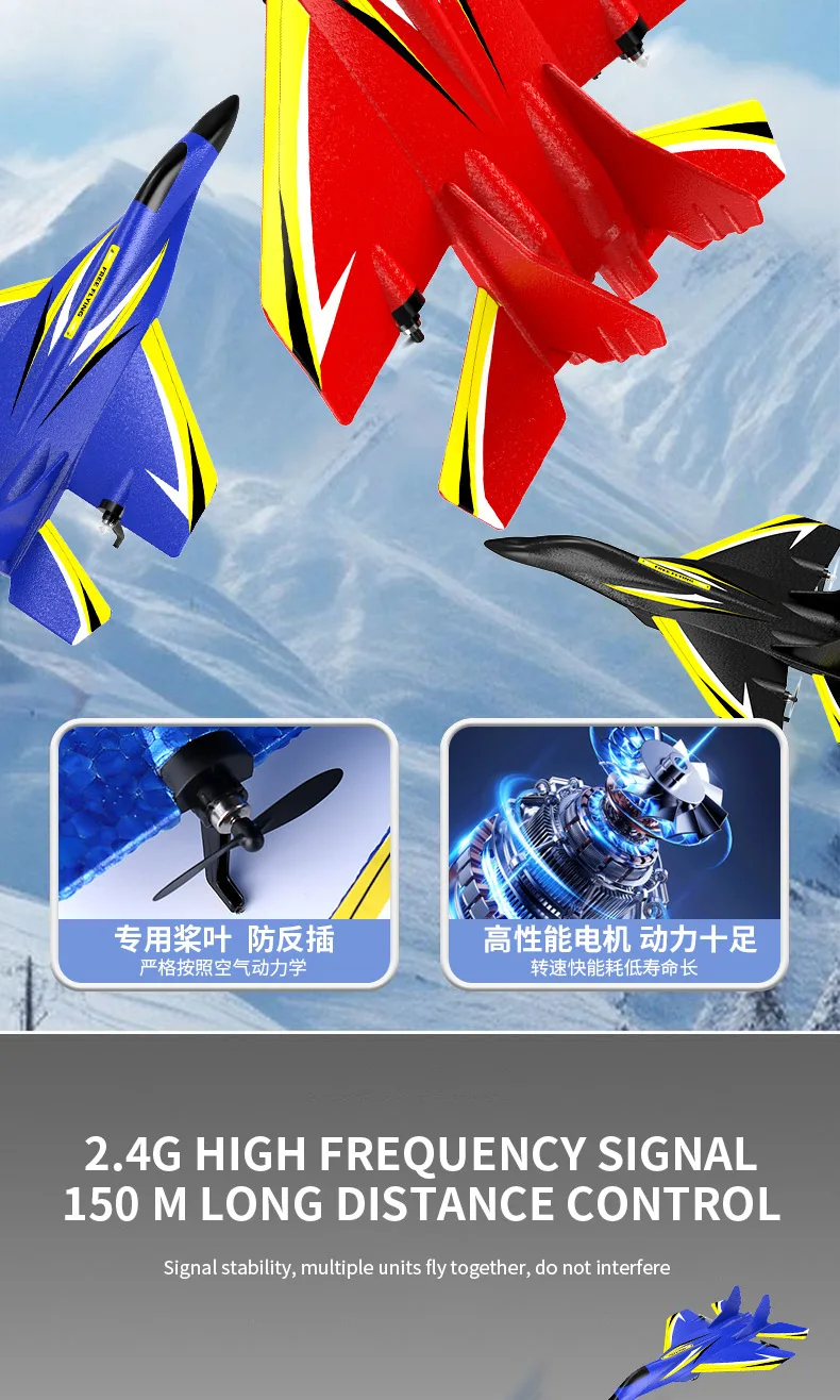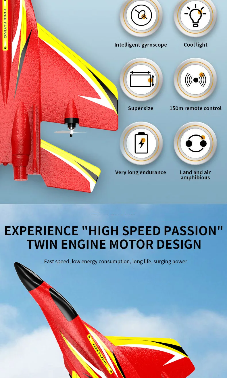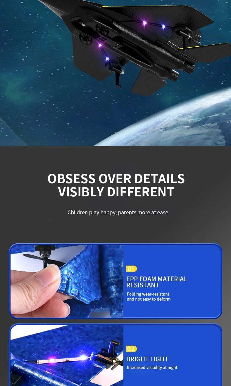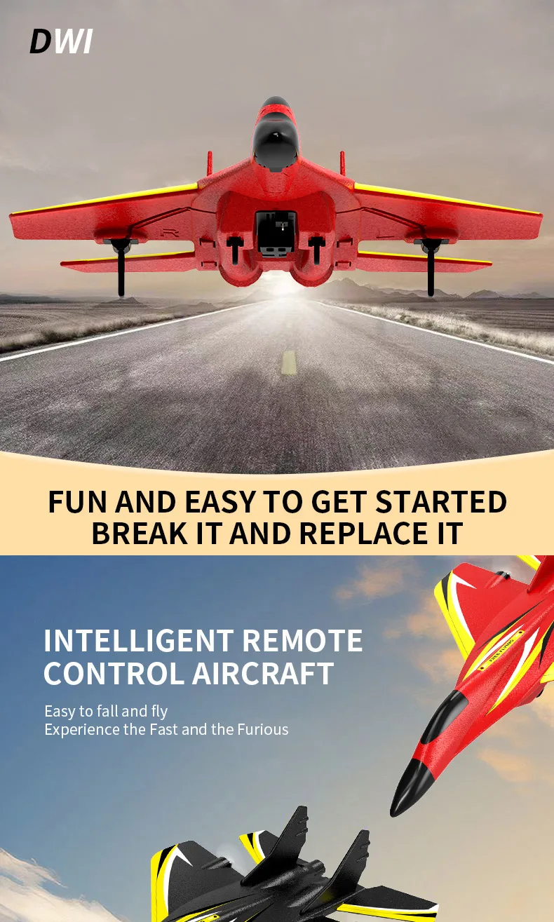 DWi RC Foam Airplane 2.4G Remote Control Glider Fighter Jet with Cool LED Light Toy Gift for Boys Kids Remote control aircraft