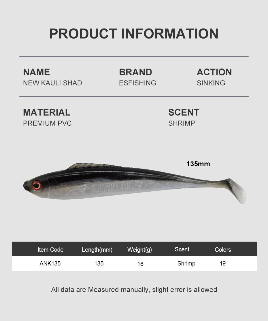 ESFISHING Fishing Lures New Kauli Shad 135mm 160mm Soft Bait Tackle Swimbait Isca Artificial Wobbler Bass
