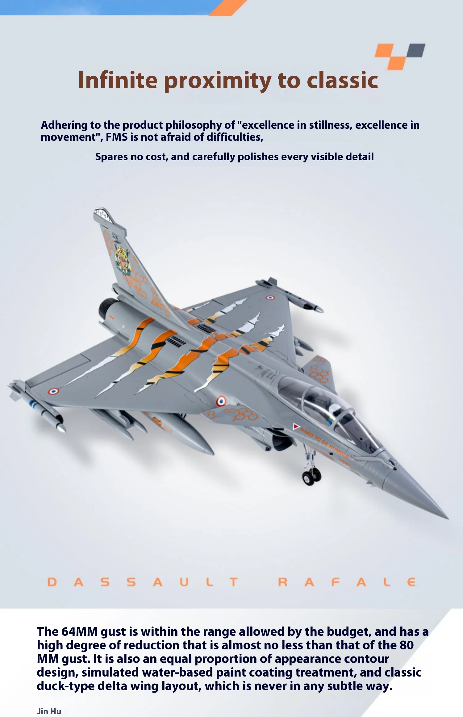 The FMS 64mm EDF Rafale is a highly realistic attack jet model designed for adult RC aviation enthusiasts. Powered by a 64mm ducted fan system, it delivers impressive speed and agility, making it perfect for both casual flying and advanced maneuvers. The fixed-wing design ensures stability and durability, while the detailed craftsmanship replicates the iconic Rafale fighter jet for an immersive experience.