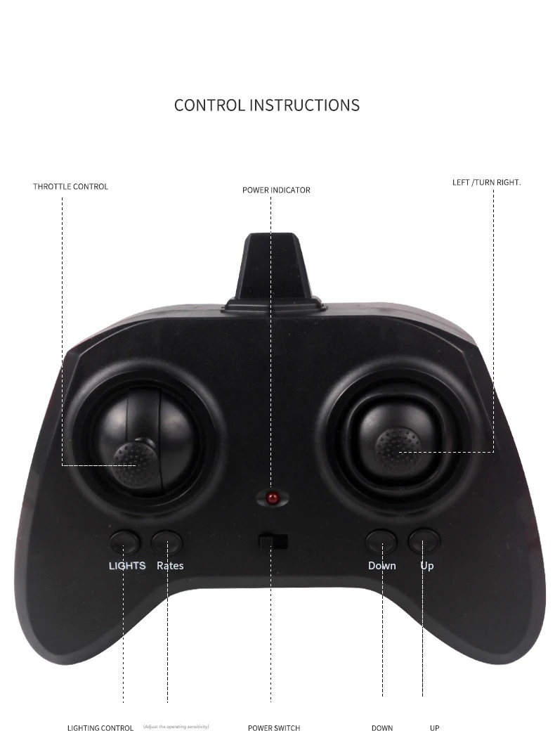Flight functions: forward ascent, descent, left and right turns, hovering, backflip, gyroscope automatic balance