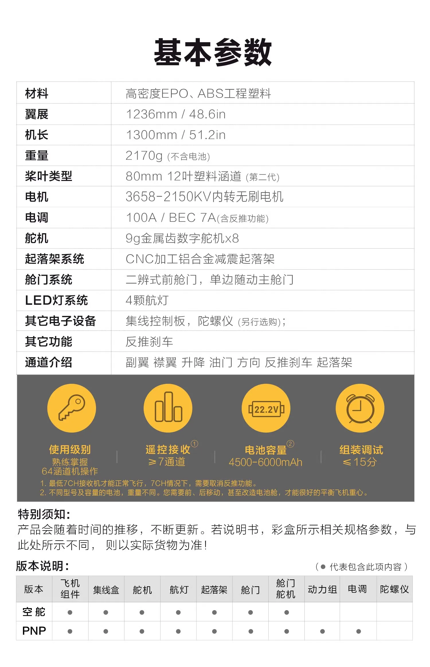 Main Specification for Freewing New 80mm EDF RC Jet Avanti S v2 PNP: