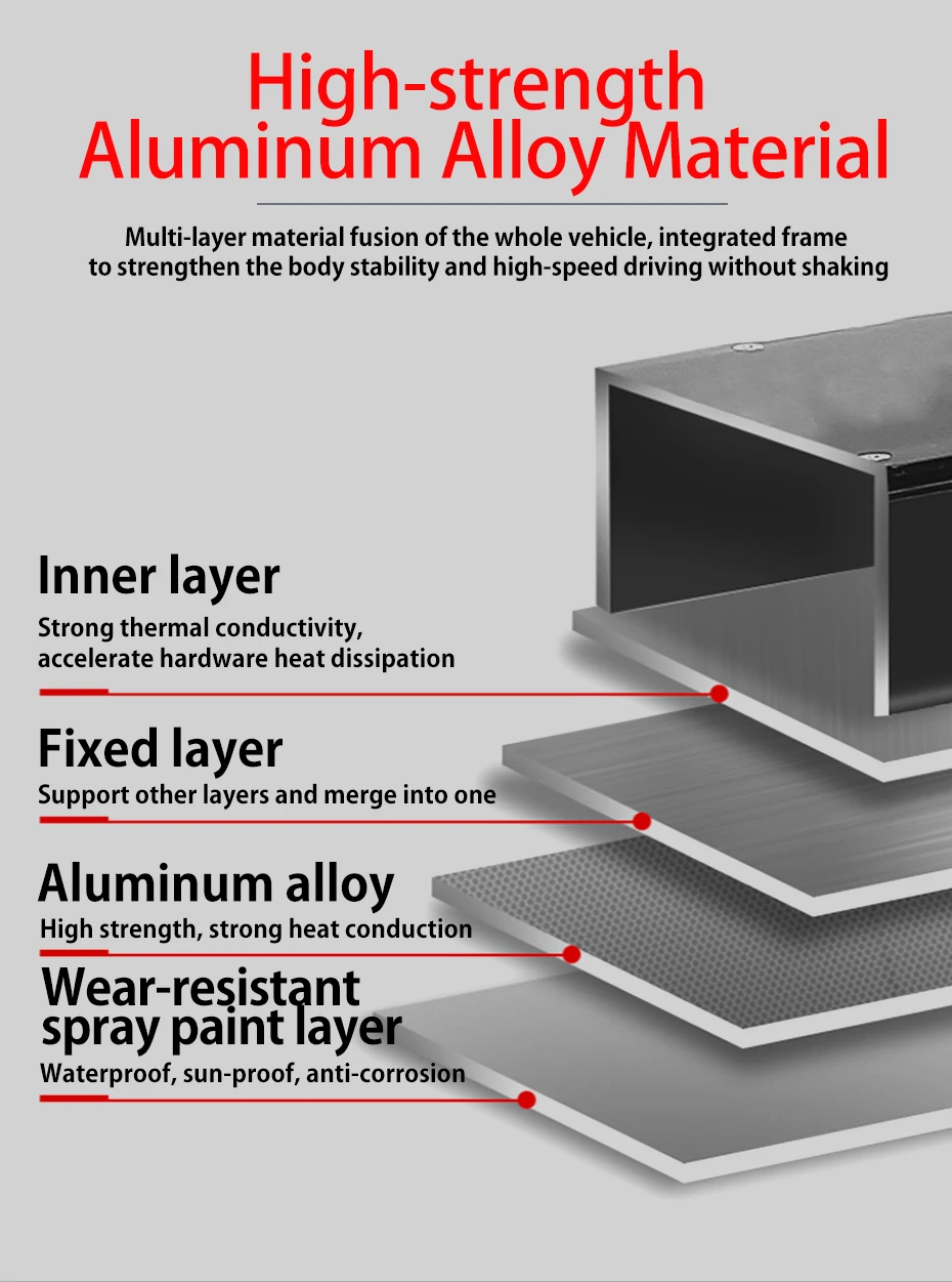 Multi-layer material fusion of the whole vehicle, integrated frame to strengthen the body stability and high-speed driving without shaking.