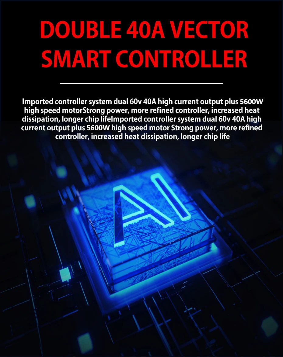 Imported controller system dual 72V 40A high current output plus 6000w high speed motor strong power, more refined controller, increased heat dissipation, longer chip life.