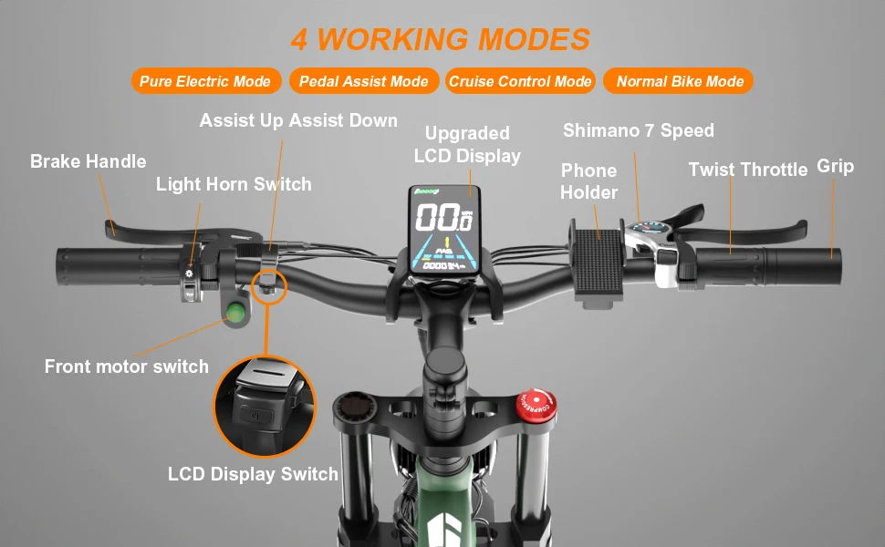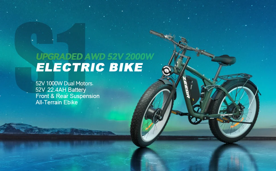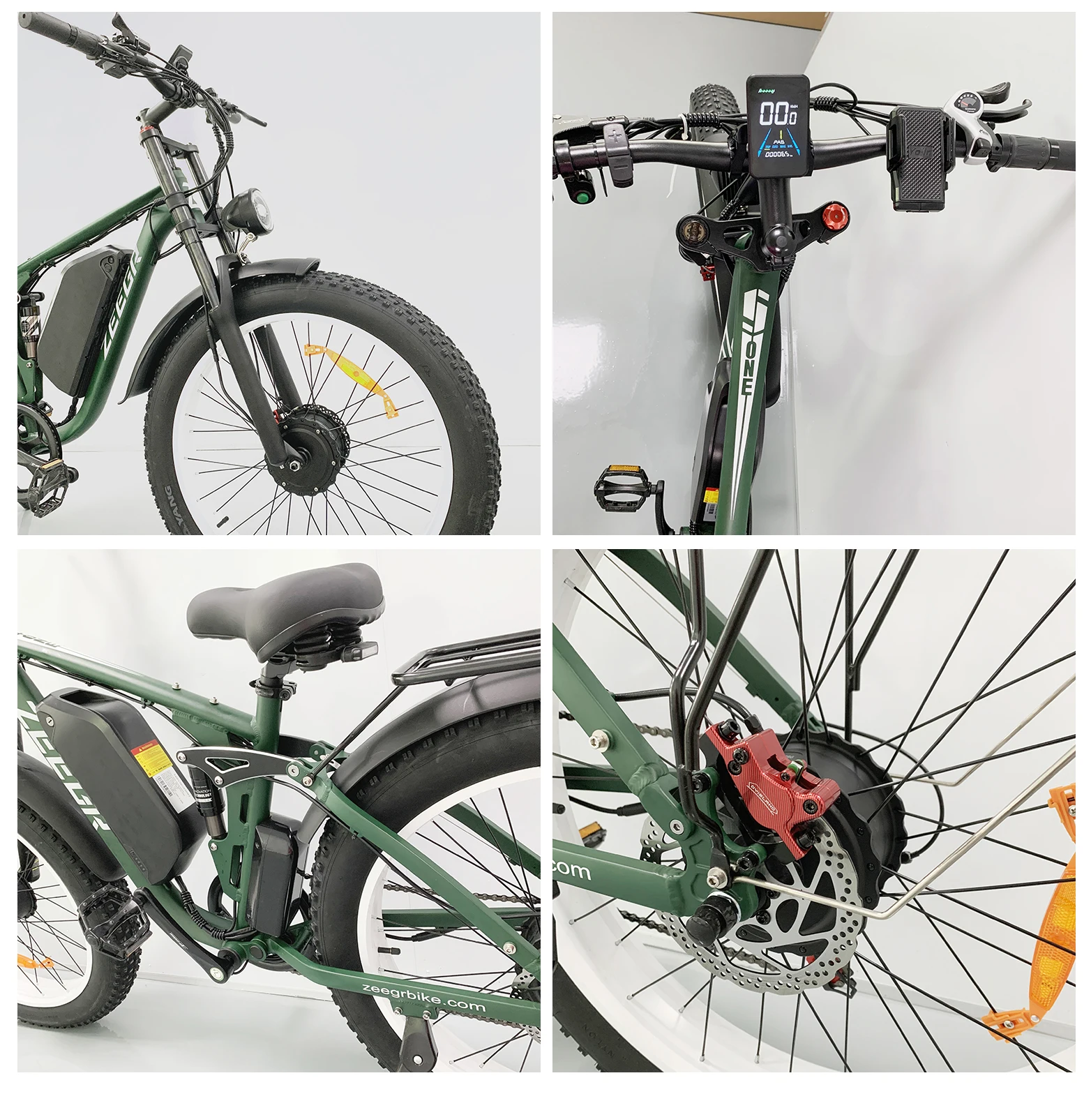2000w Dual Motor 26" Inch Fat Tire E-bike 52v/22.4ah Lithium Battery Mountain Ebike Disc Brake Electric Bicycle Dirt Ebike