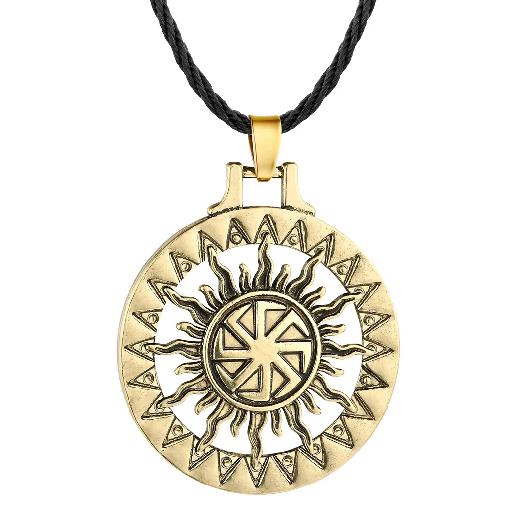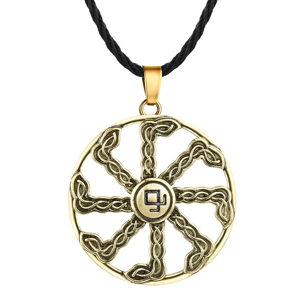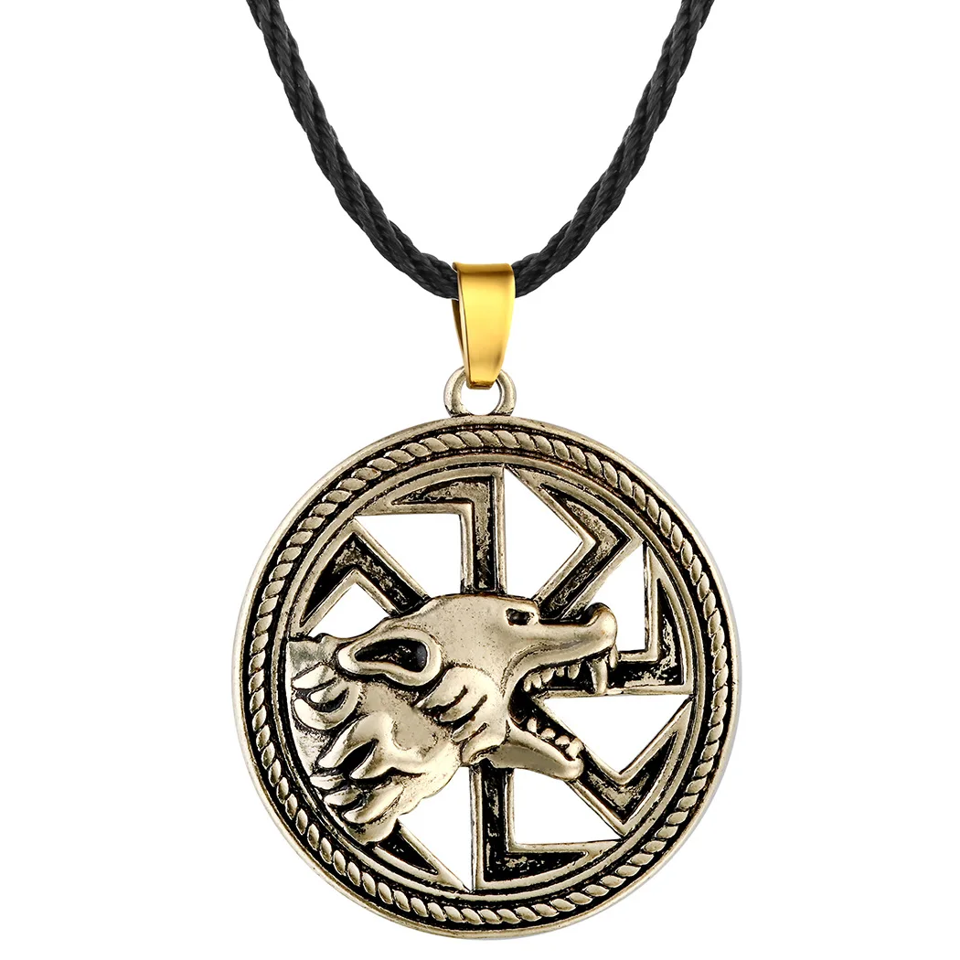 Antiquing Viking Runes Talisman Jewelry Slavic Veles Symbol Kolovrat Pendant Wolf Bear Paw Amulet Necklace Men Pagan