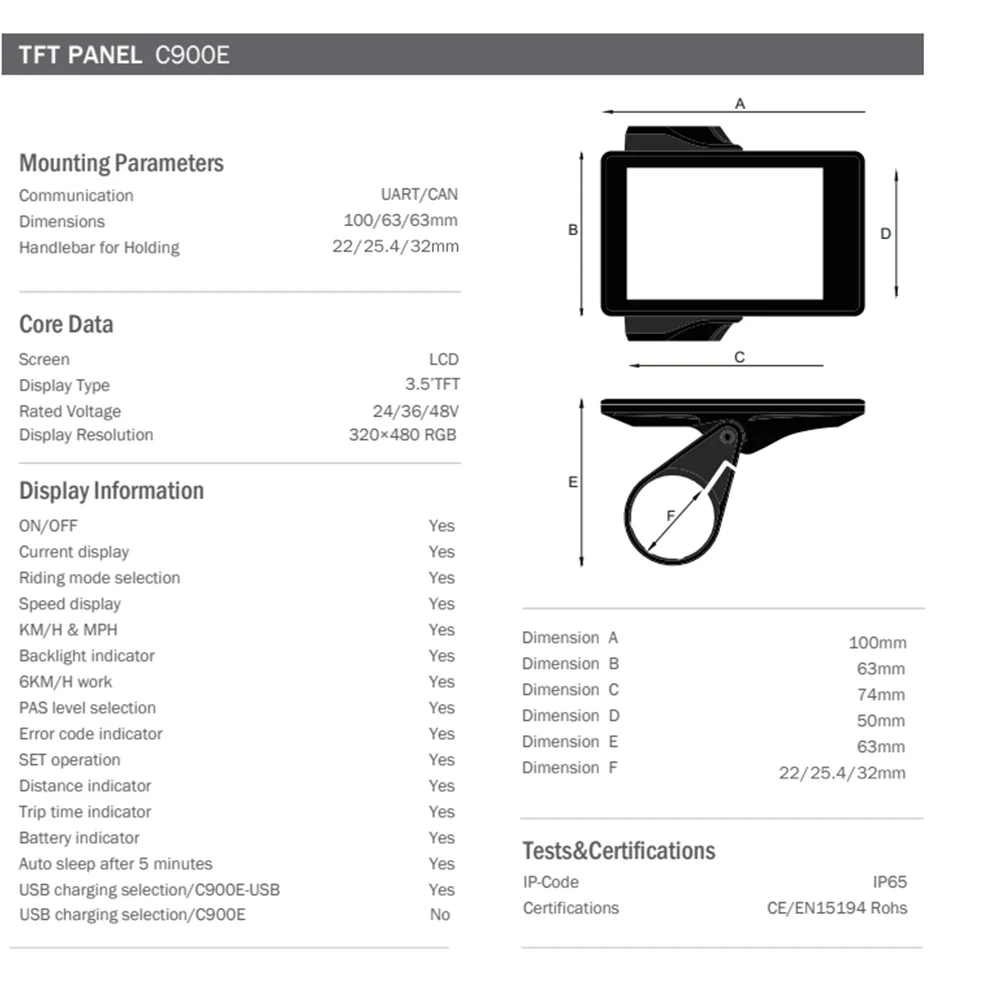 C900E color LCD display, there are different LCD Display protocols on different brands of ebikes, please contact our online customer service to determine the LCD Display protocol you need before you buy, if you don't determine the LCD Display protocol with our online customer service, your purchased display may not match your ebike! This is very important thing! Please contact us!