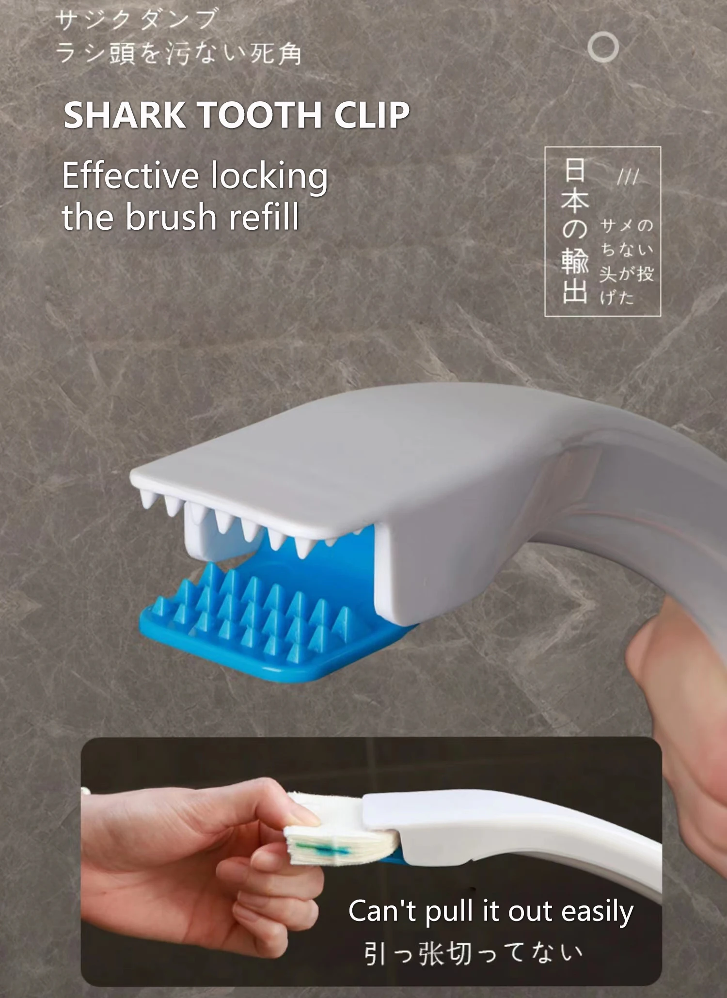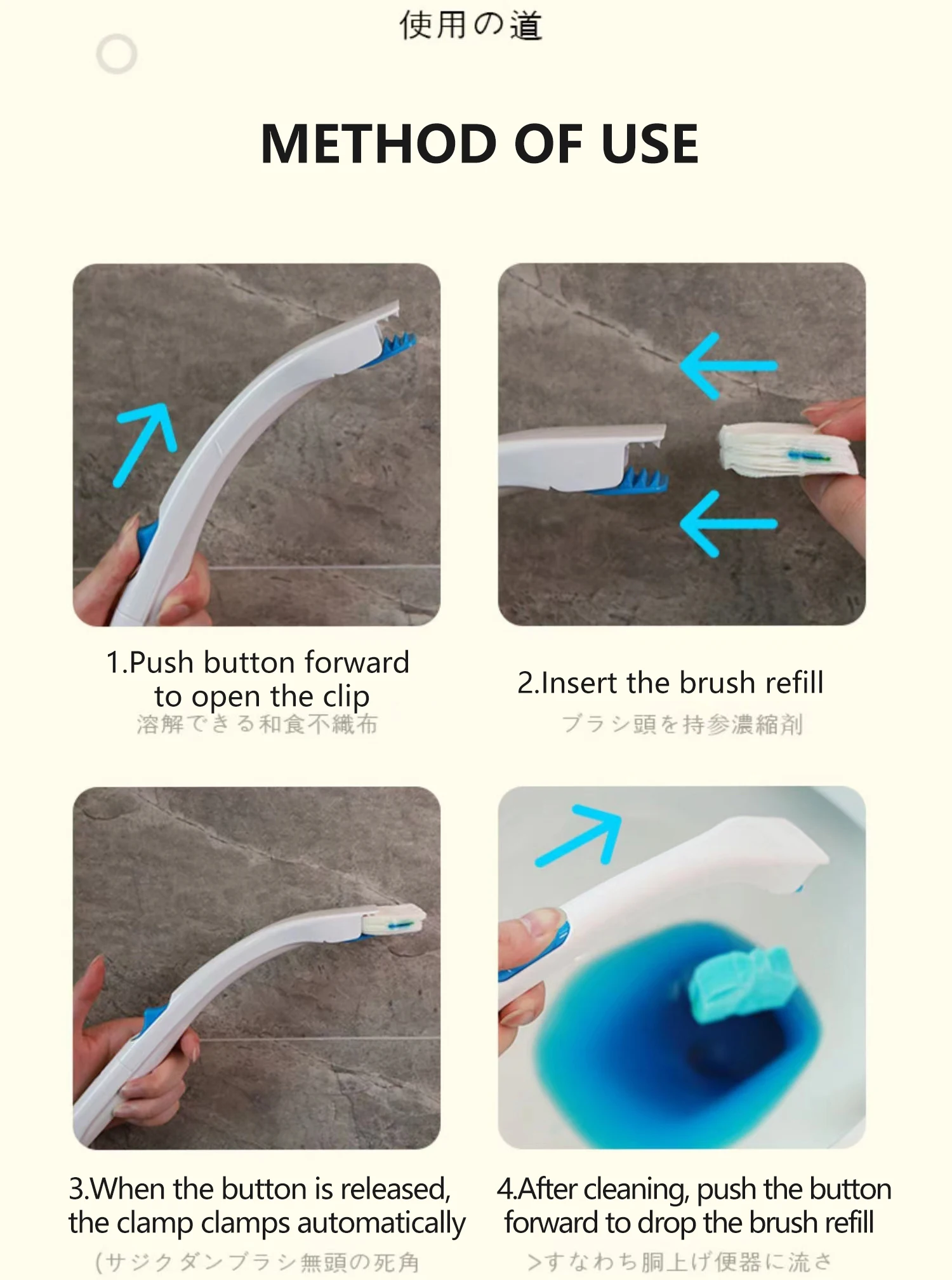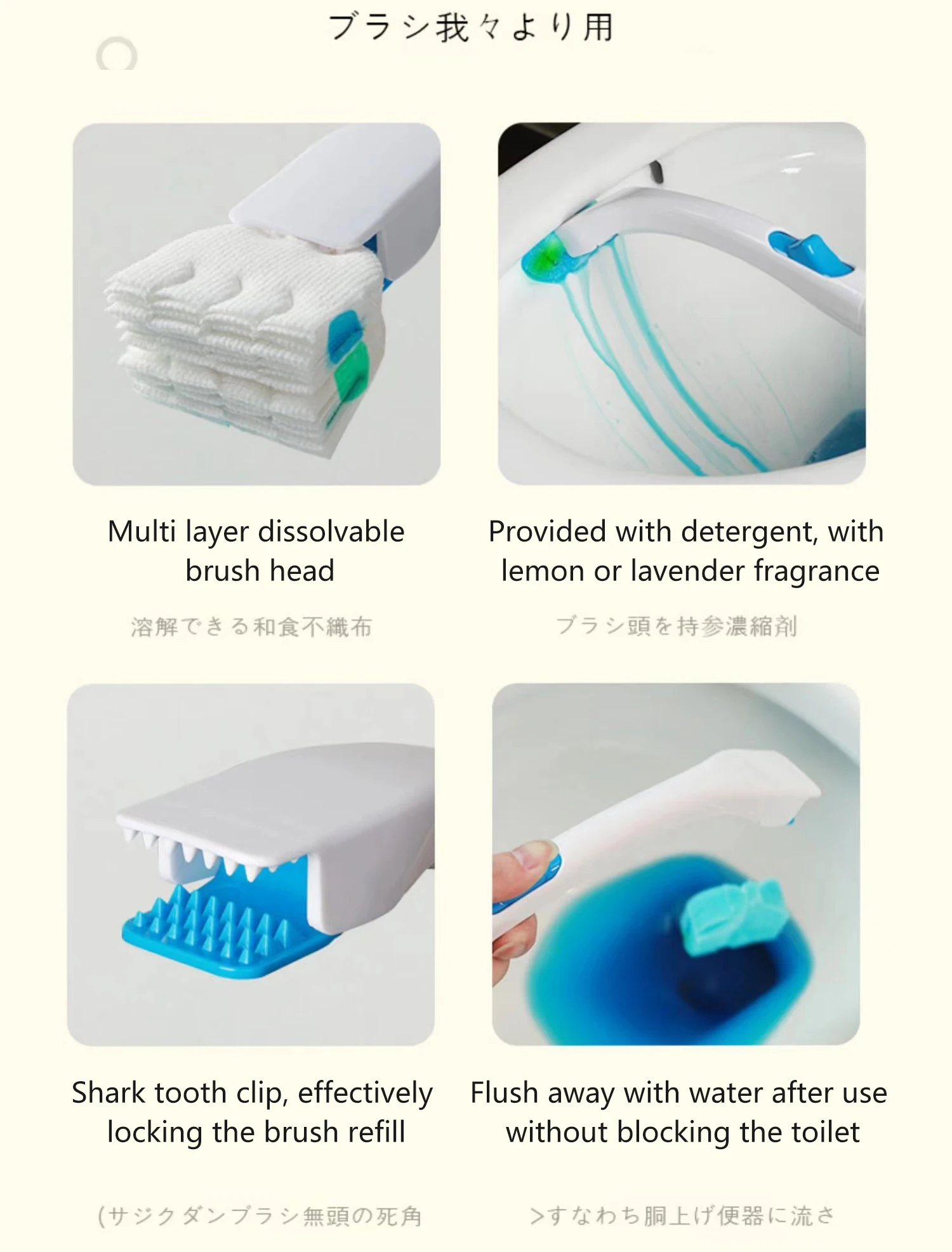 The brush head contains detergent, which is used to clean the toilet. After use, it can be directly thrown into the toilet and flush away with water