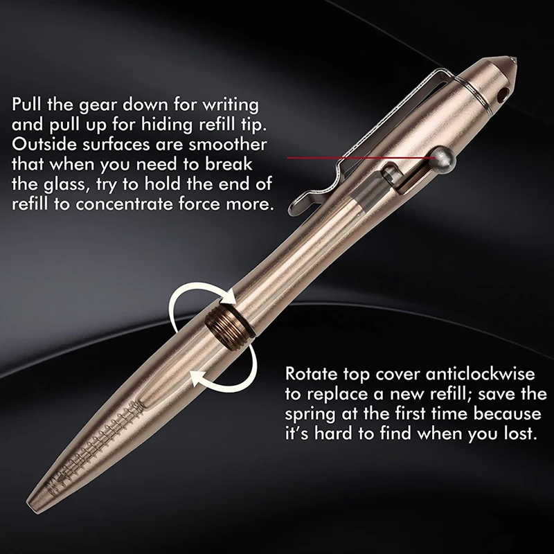 Our tactical pens are strong to escape in an emergency. It can help you break the window even if the car falls into the water or the bus or house gets fire.