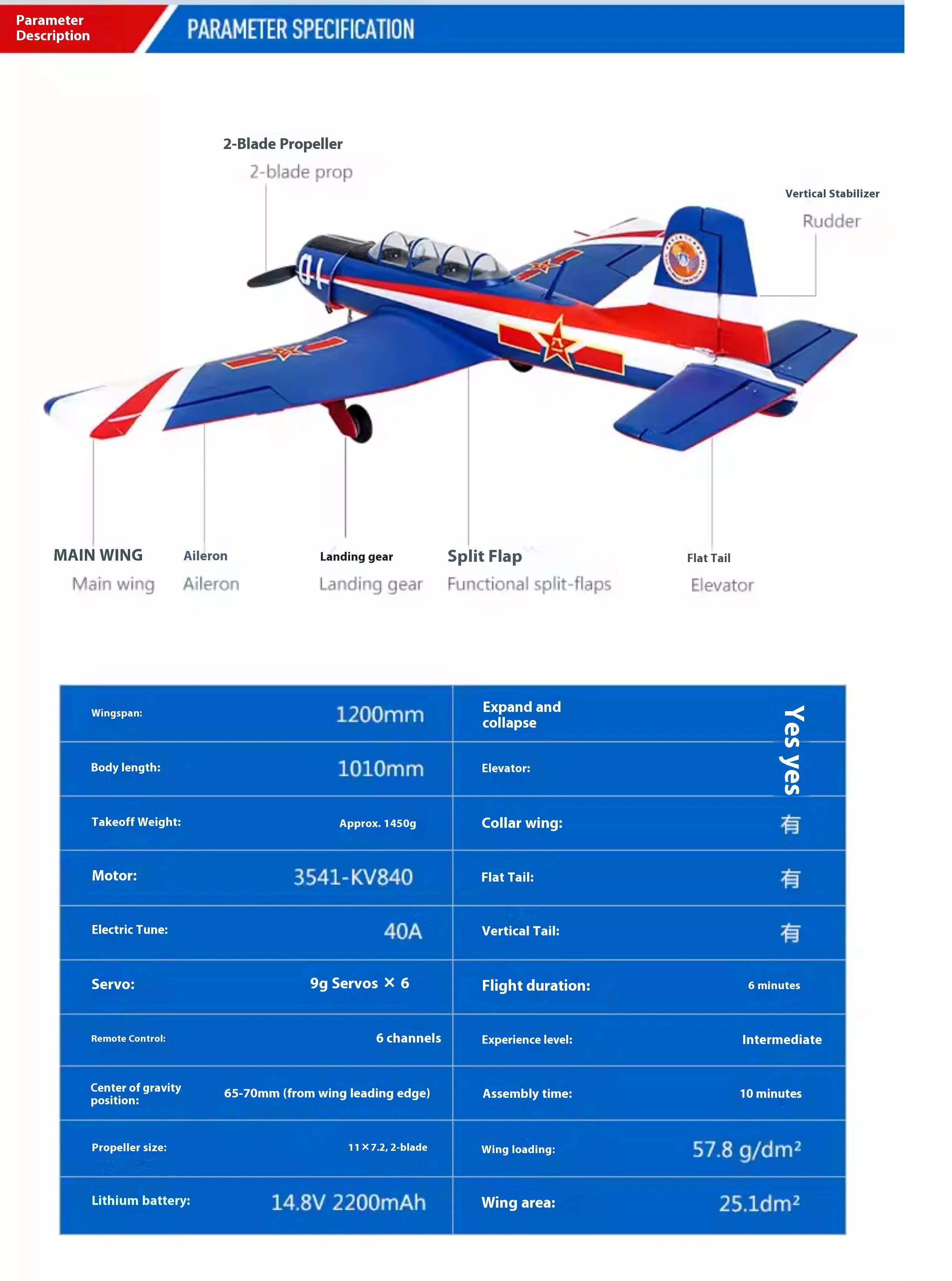 New FMS Model 1200mm First Class V2CJ-6 Air Force Fixed Wing Aircraft Training Aircraft Remote Controlled Electric Aircraft