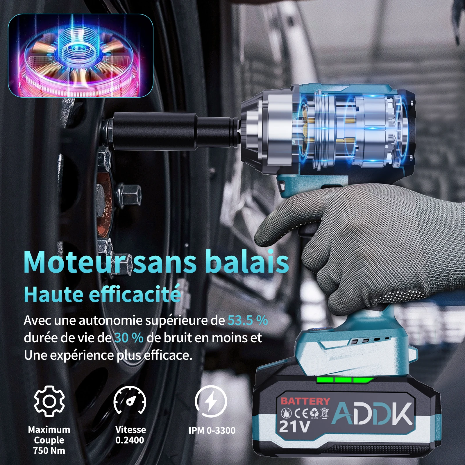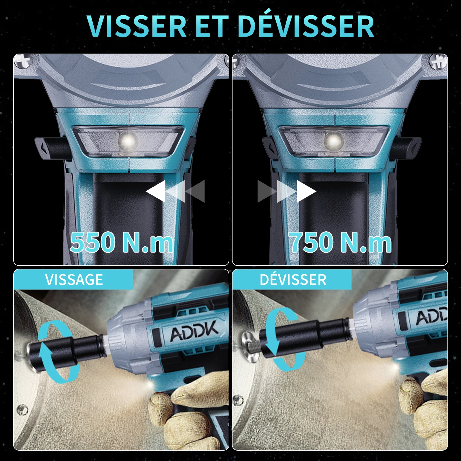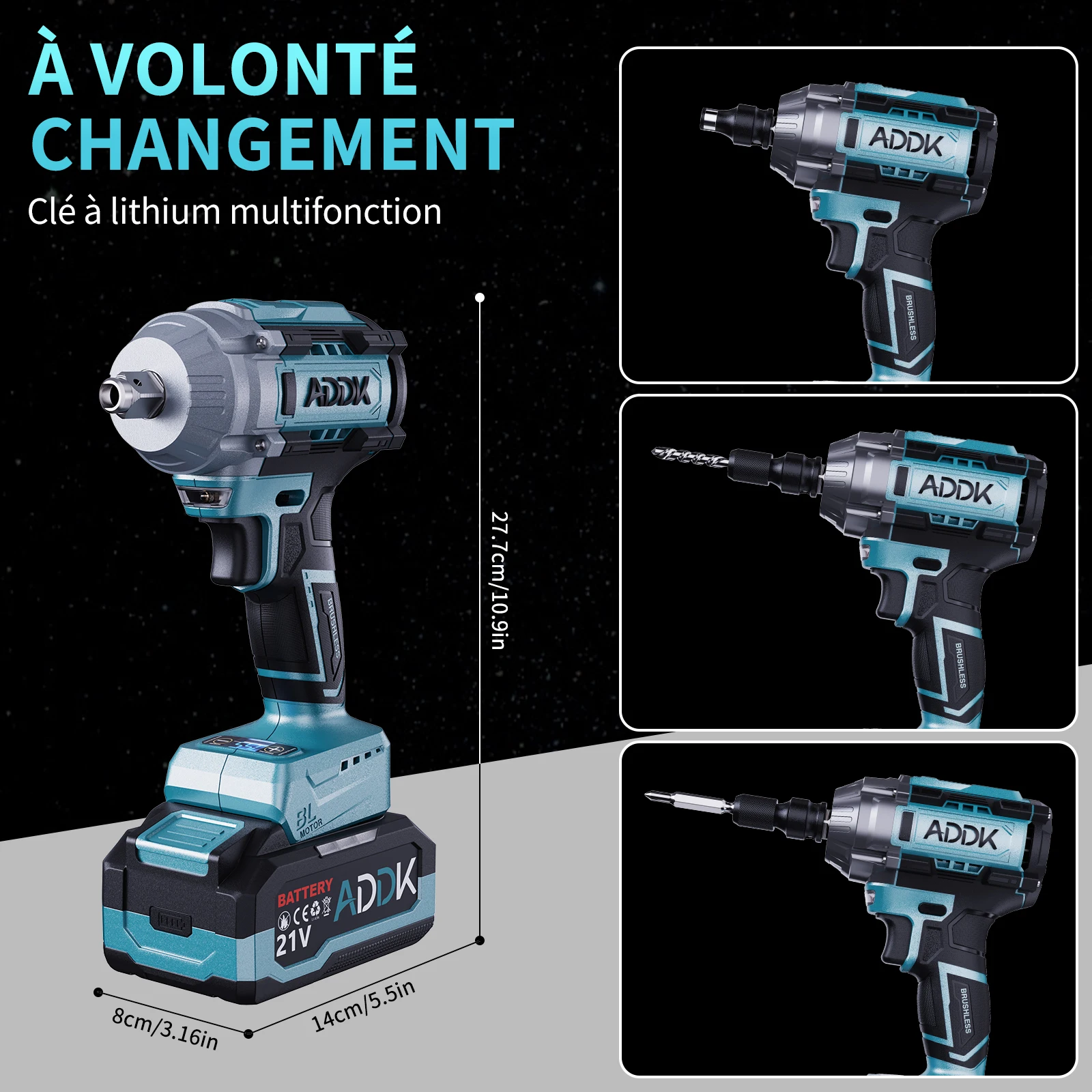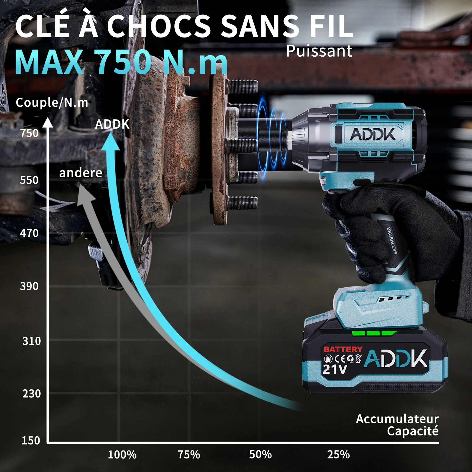 【Long-lasting Efficiency】: We know that battery life is of utmost importance to users. The ADDK cordless impact wrench comes with a new high-performance lithium battery that offers 30% longer runtime compared to standard 4.0Ah batteries. This means you can work for longer periods without worrying about battery life. An LED indicator shows the remaining power in real time, so you're always informed during use.