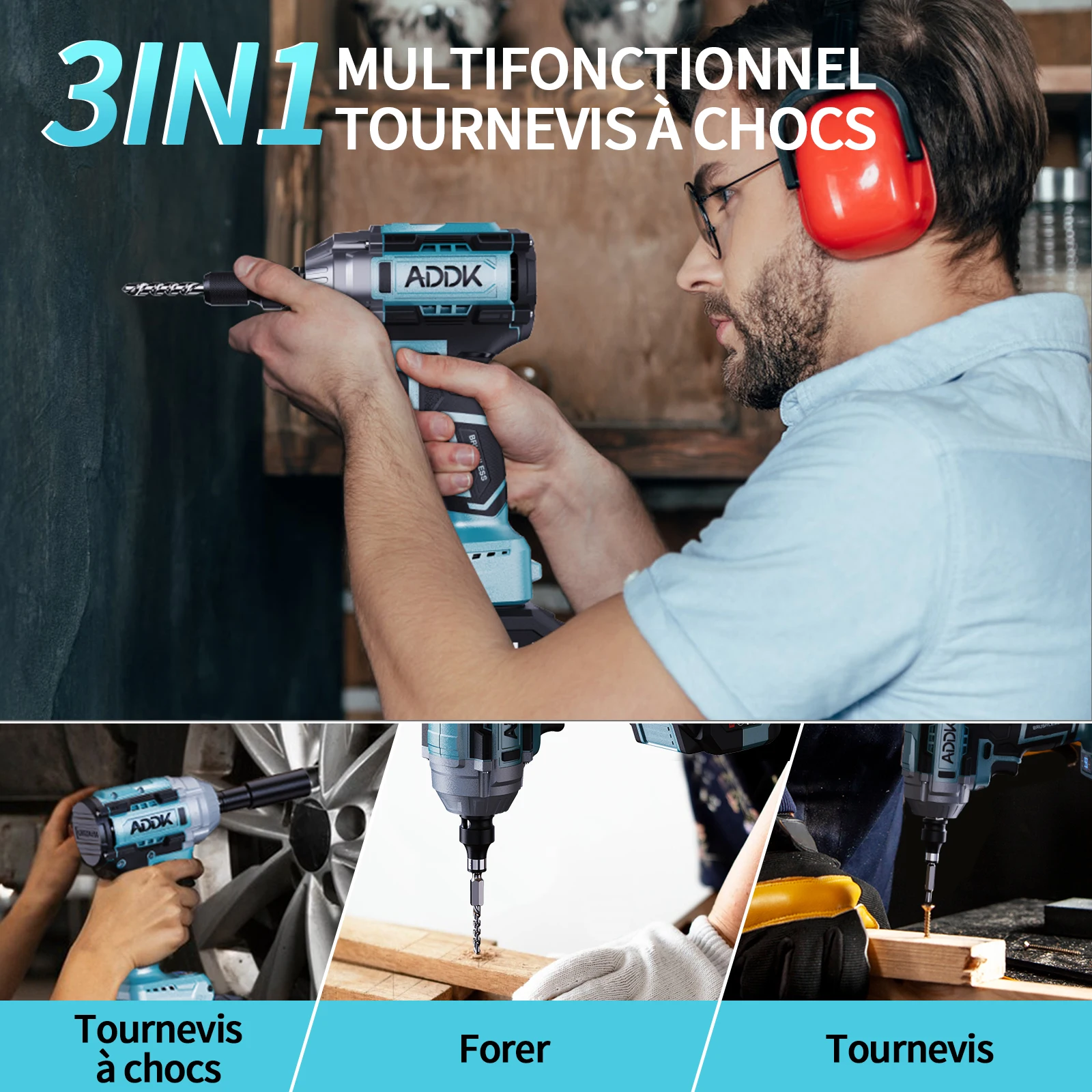 【Outstanding Performance】: This 1/2-inch electric screwdriver delivers an impressive 405 foot-pounds (550 N.m) of torque, effortlessly tackling any challenge. The robust impact driver is perfect for loosening or tightening screws on cars or motorcycles, as well as bolts on doors or walls. Whether you're tackling stubborn screws during car repairs or everyday DIY tasks, you'll feel the powerful performance that makes any difficulty manageable.