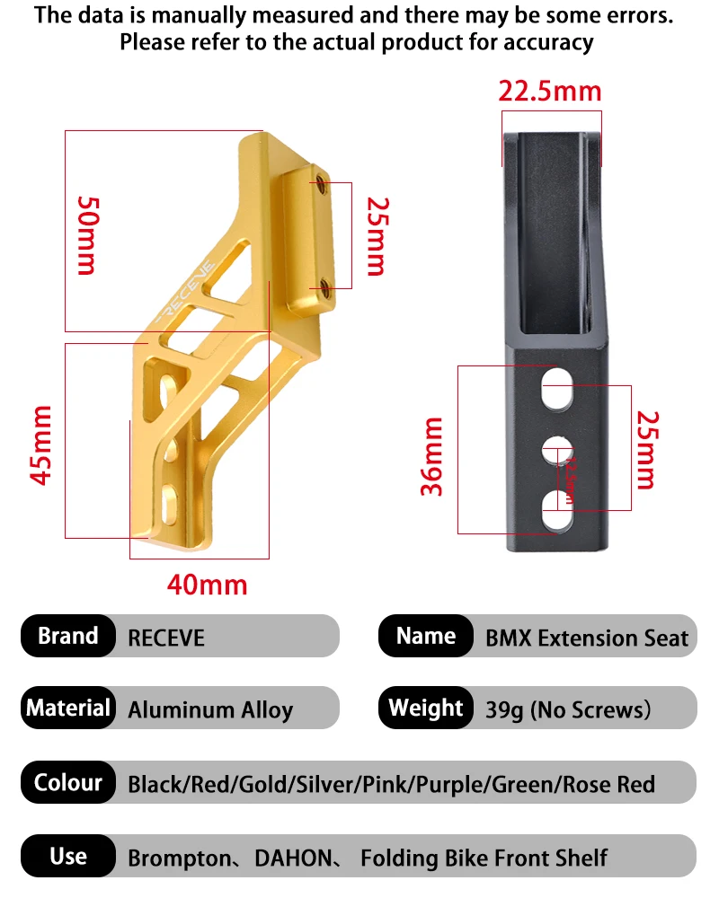 RECEVE Folding Bike Bag Carrier Raise Adapter Bicycle Shelf Extended Seat BMX Front Bag Carrier Rising Mount Holder For Brompton