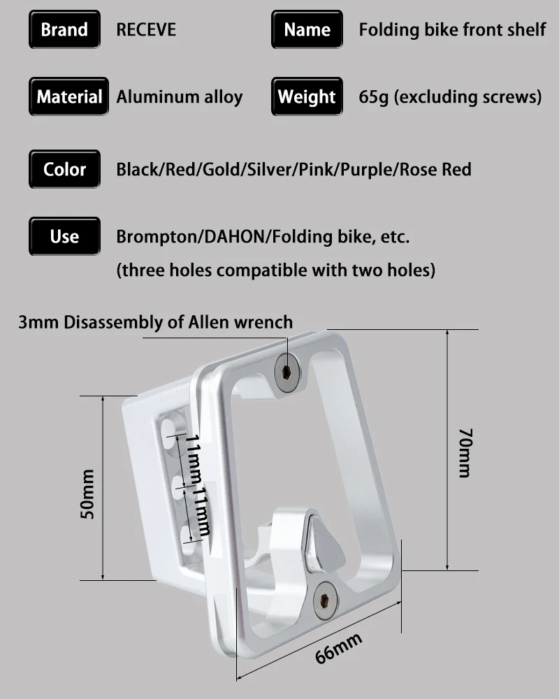 RECEVE Folding Bike Front Shelf Mount 3 Hole Bicycle Split Pig Nose Pad BMX Aluminum Alloy Front Bag Carrier Block For Brompton