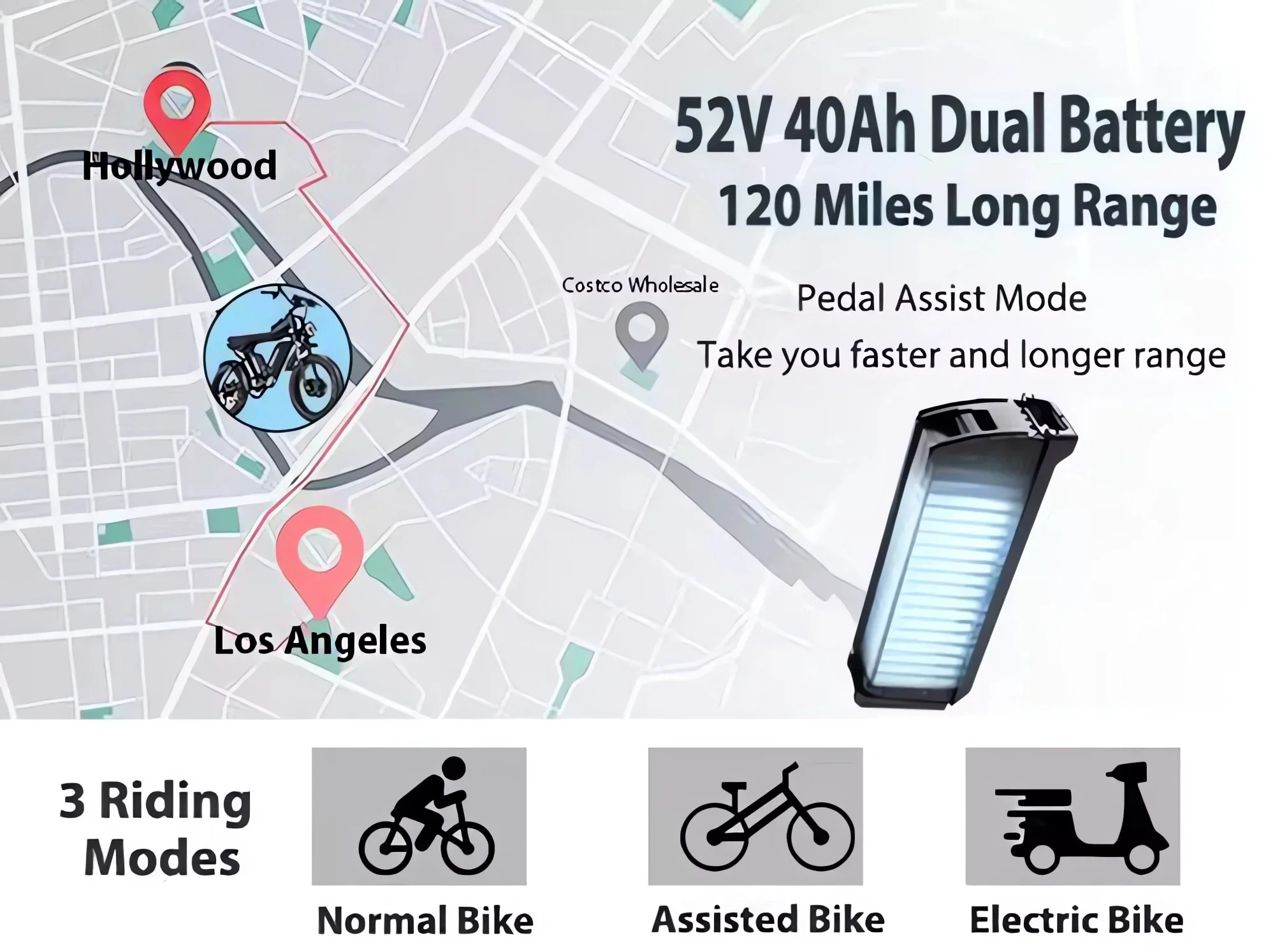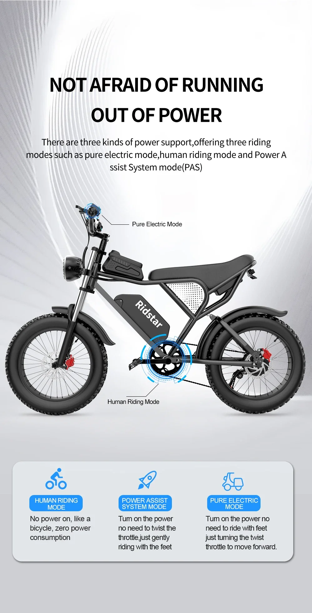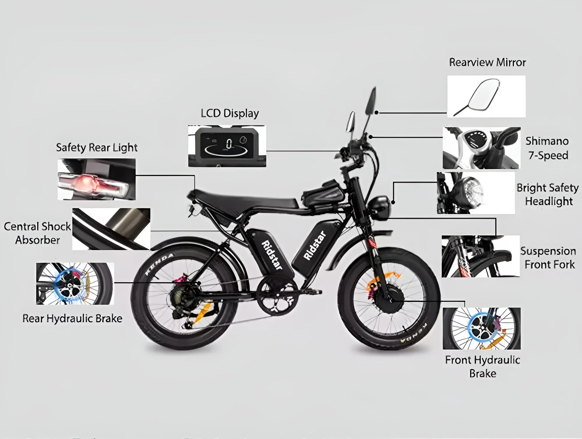 Ridstar Q20 Electric Bike 2000W 52V 40AH Waterproof Powerful Dual motor 20*4.0 Fat Tire For Mountain Electric Bicycle For Adult