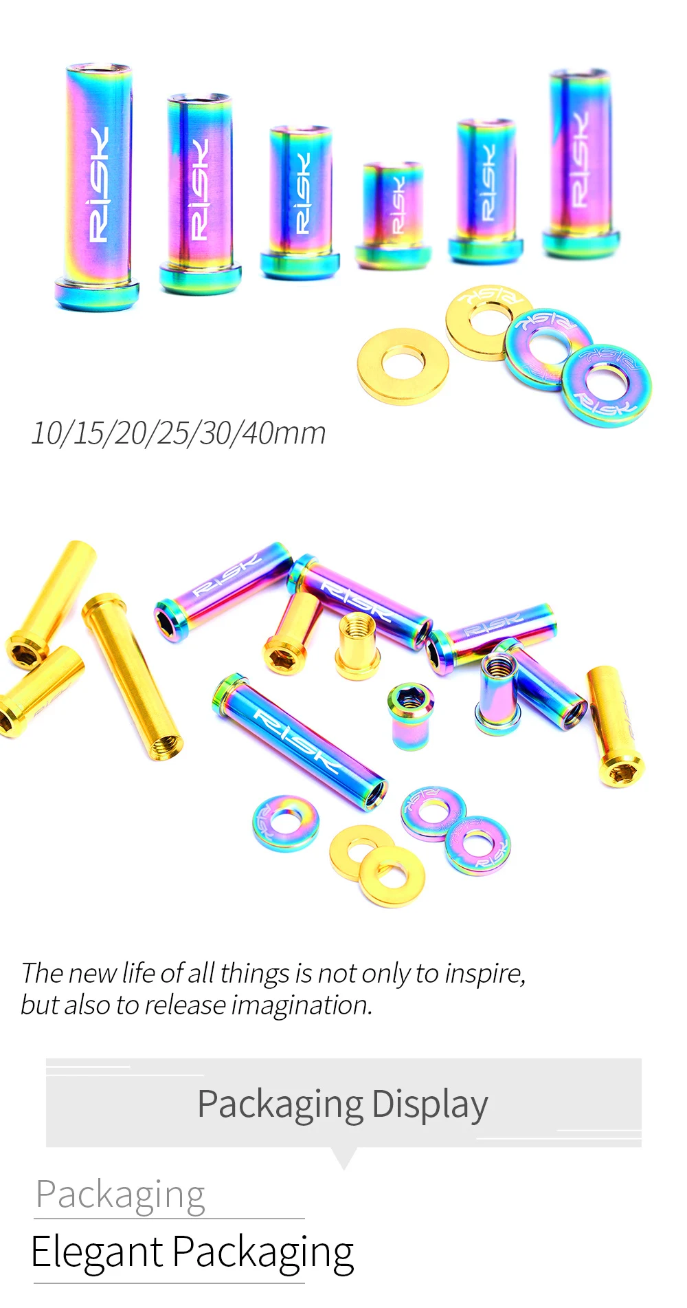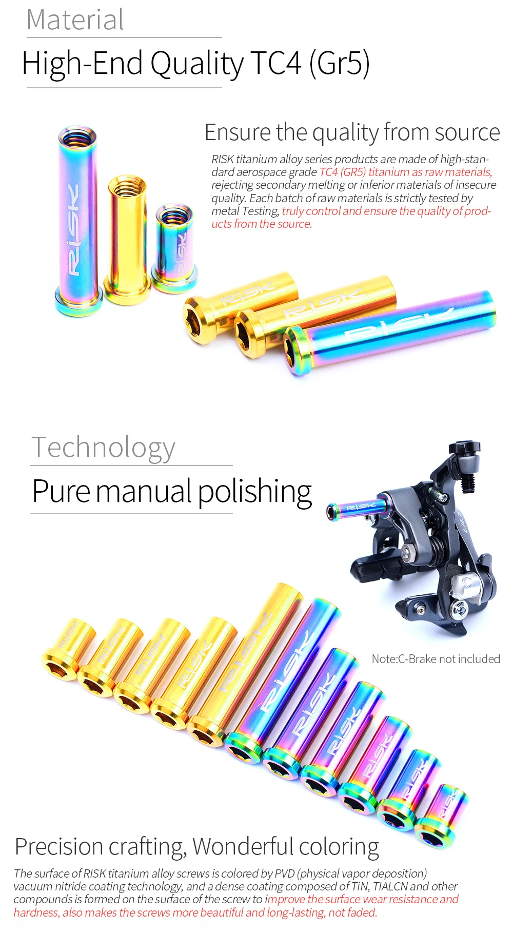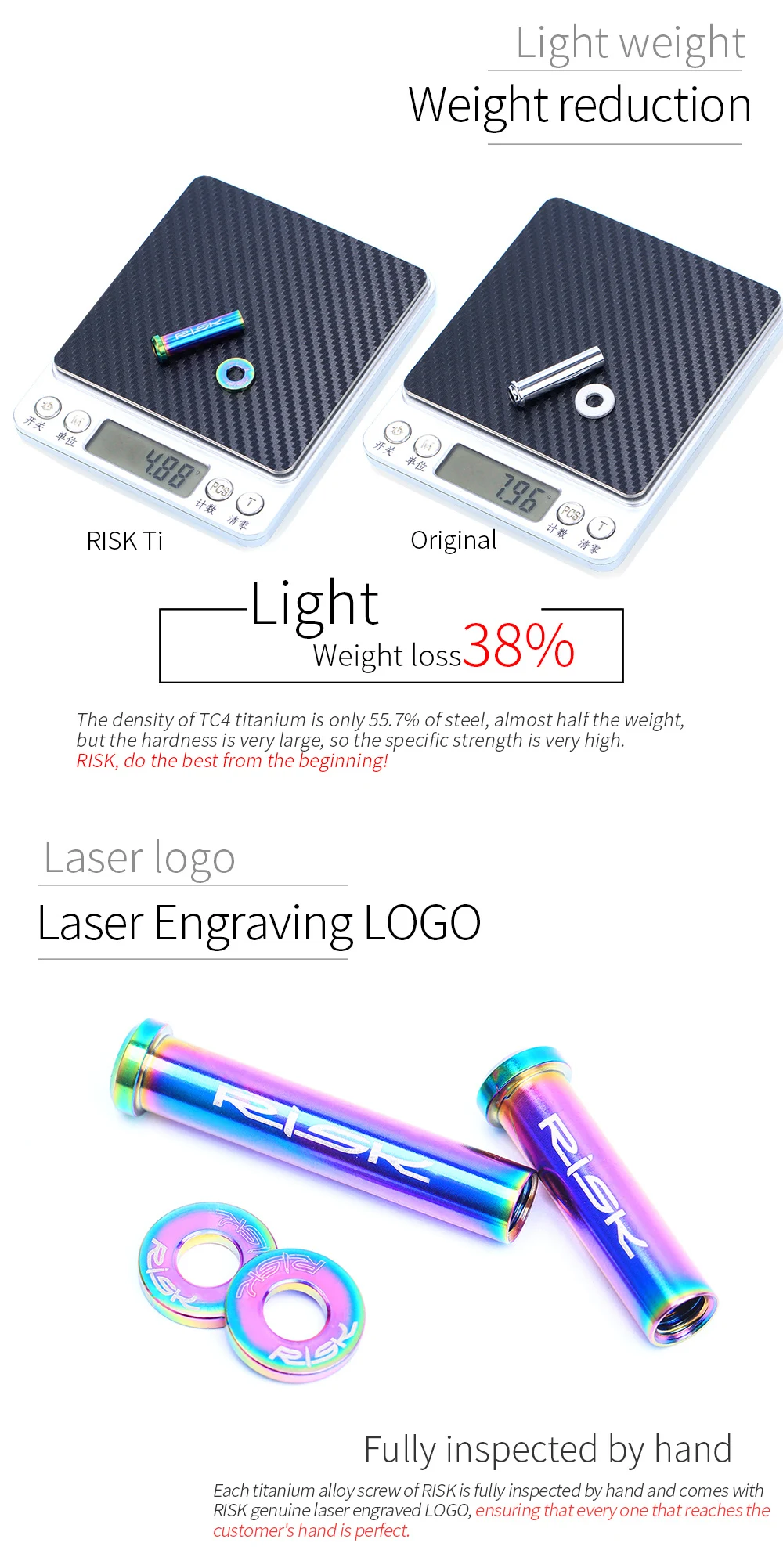 Each titanium aloyscrew of RISKis flly inspected by hand and comes with RISK genuine laser engraved LO6O, ensuring that every one that reaches the customer's hand is perect.