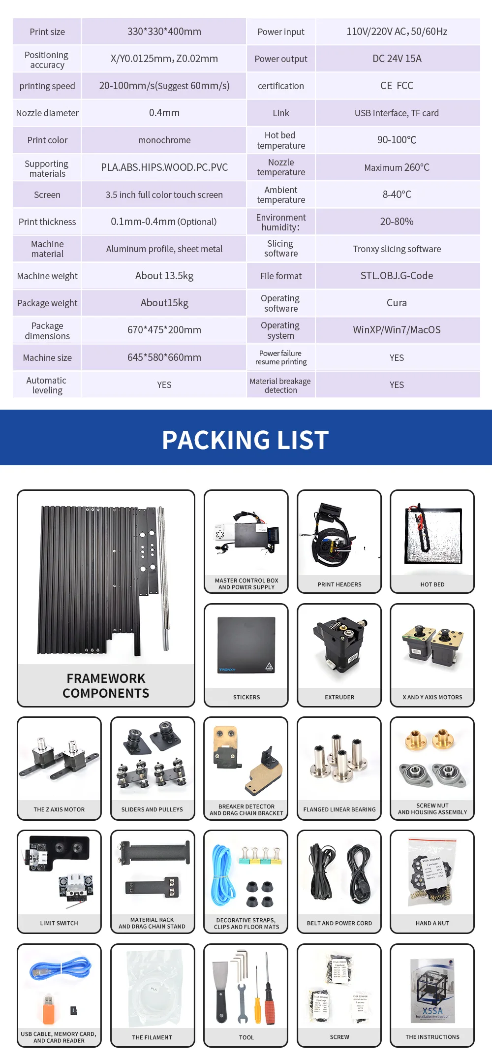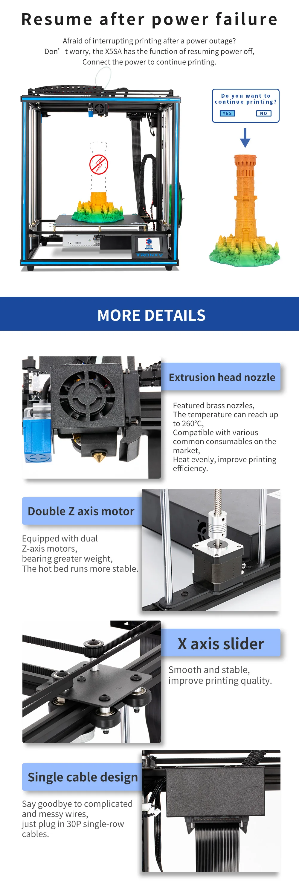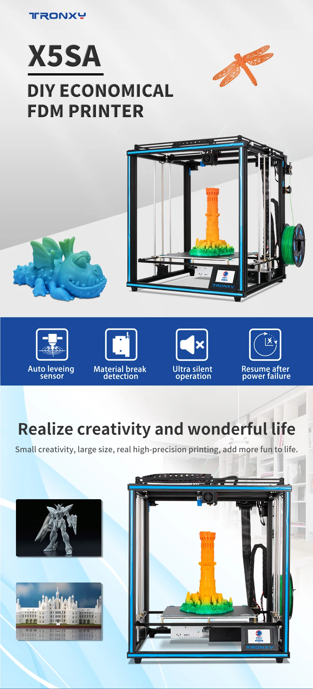 Tronxy X5SA 3D Printer DIY Kits with Large Build Plate 330*330*330mm Full Metal High Precision Resume Power Failure 3D Print