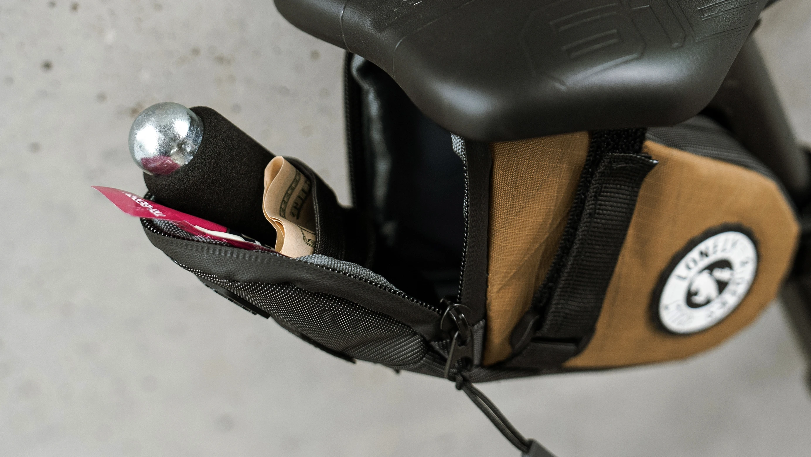 All Radtail saddle bags come with a unique triangular karabiner for various applications / uses.