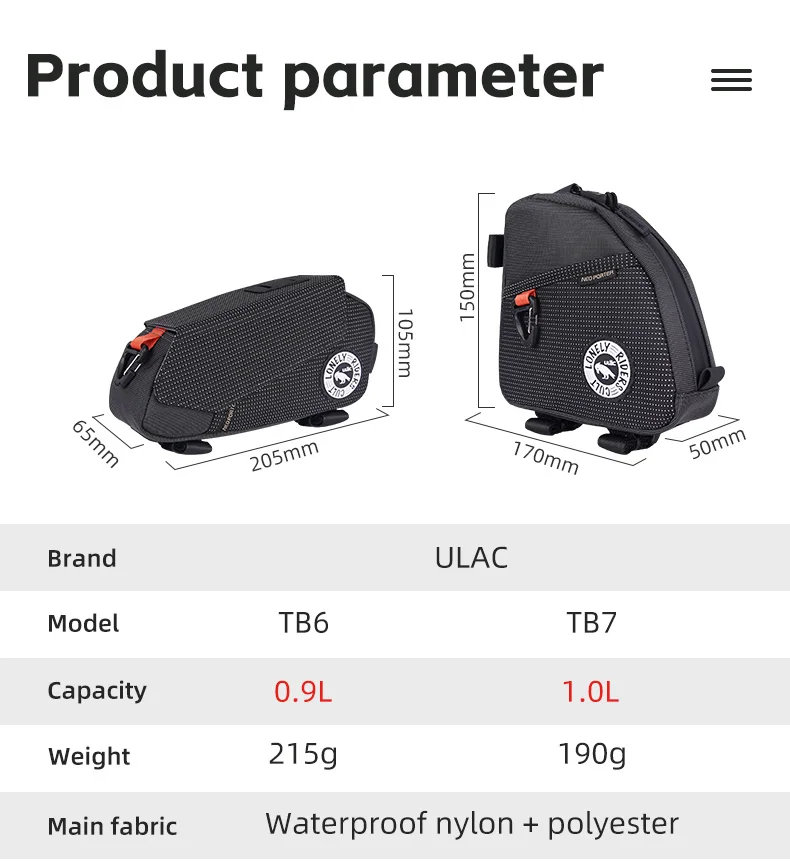 Ulac Triangle Cycling Bag Bicycle Front Saddle Tube Bag Bike Frame Pouch Bag Holder Outdoor MTB Mountain Bag Waterproof Fabric