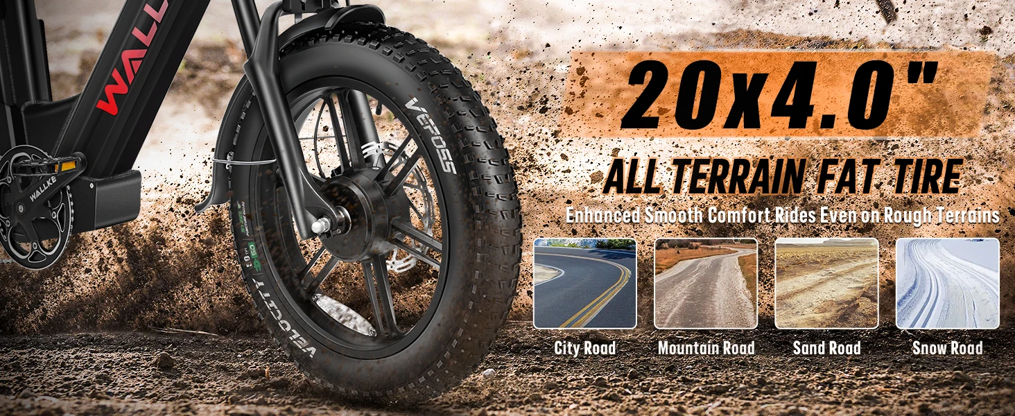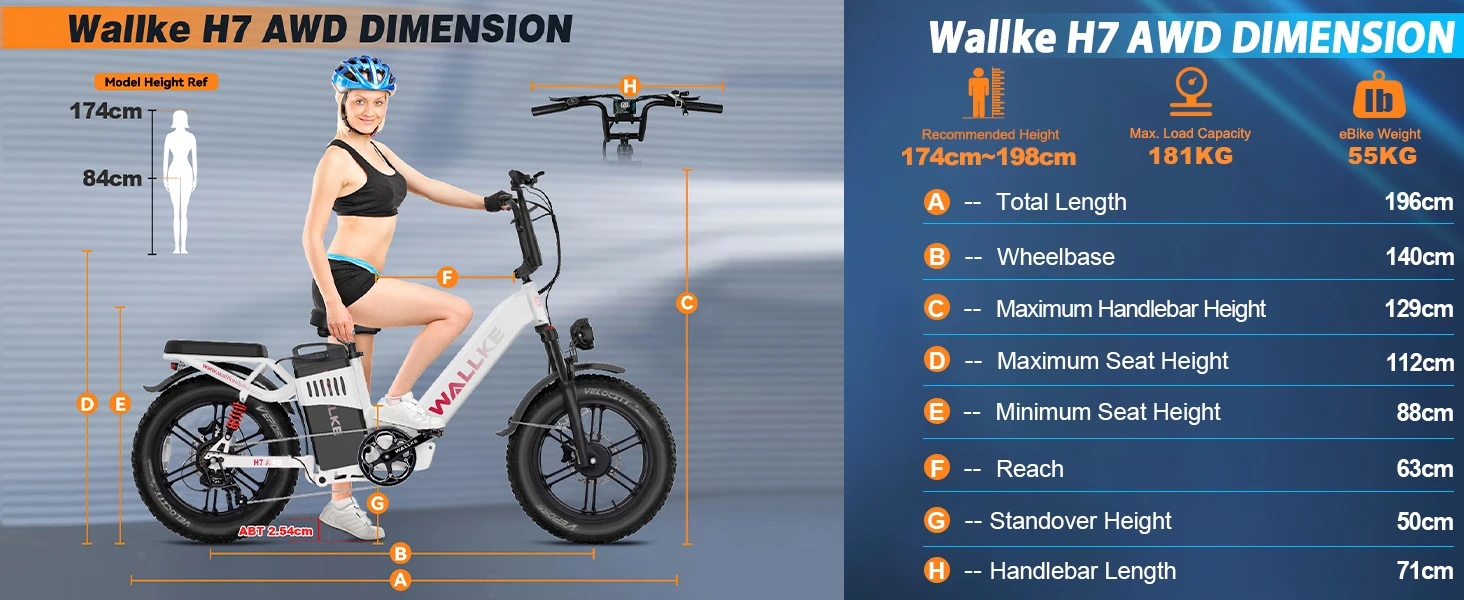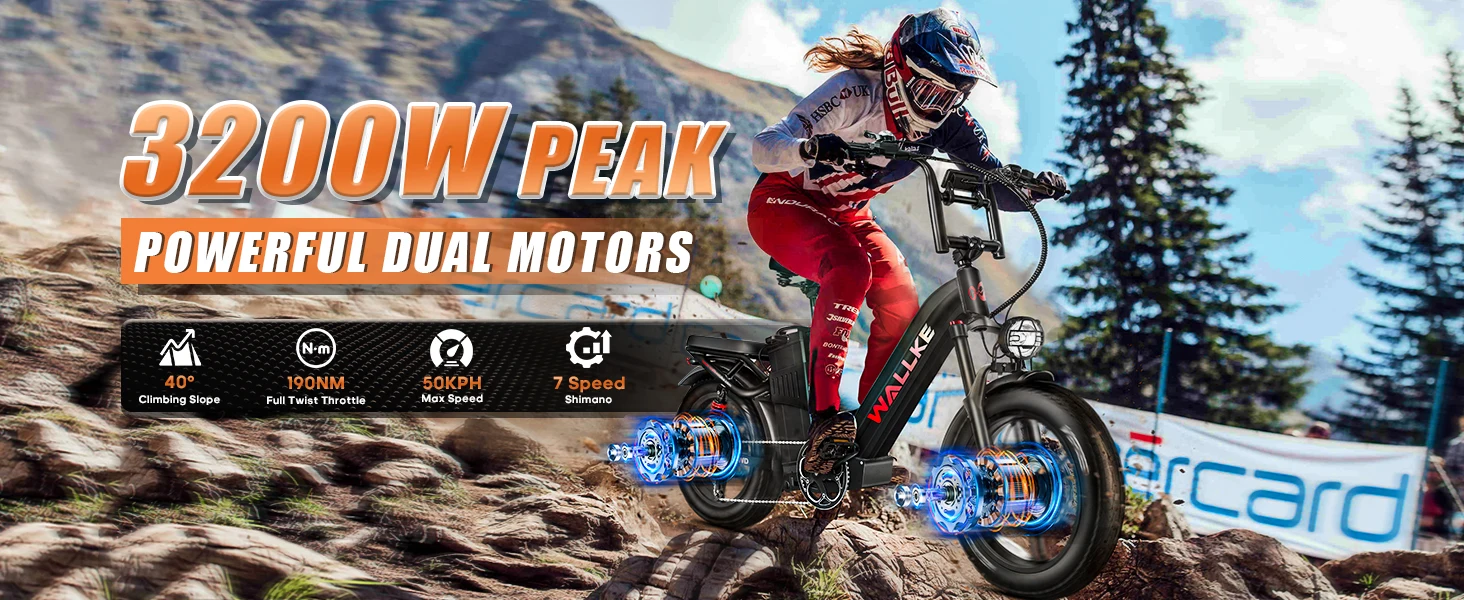 W Wallke H7 Electric Bicycle 1200W/2000W Dual Motor Electric Bike 40Ah/60Ah Step Thru Ebike 20*4'' Fat Tire Ebike W/APP Control
