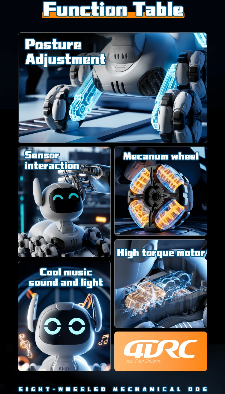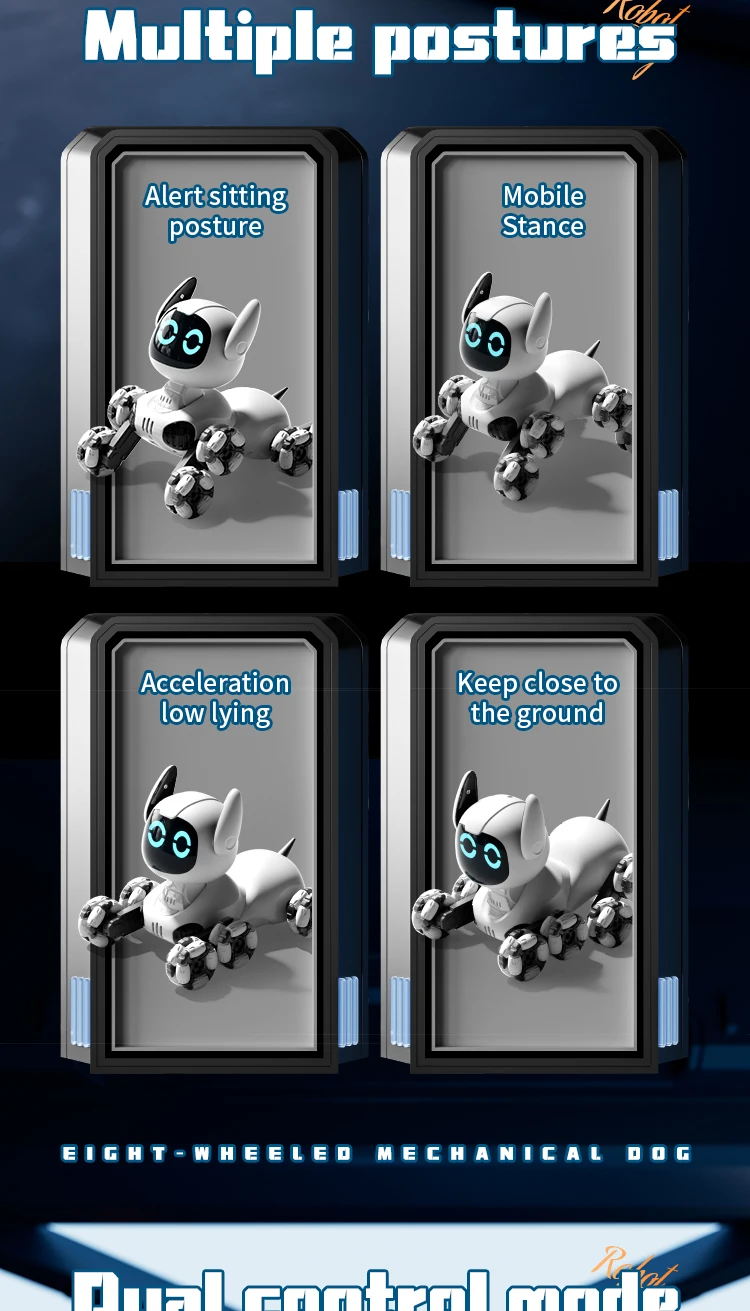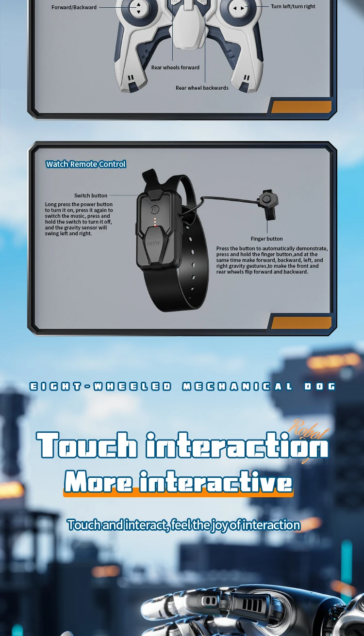【8WD RC Stunt Dog】 This remote control toy features a robot dog design with 8 wheels for incredible stunts and maneuverability. This rc stunt car lets kids experience the fun and creativity of technology, keeping them engaged and entertained for hours.